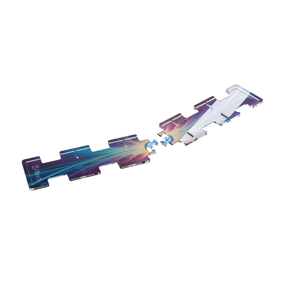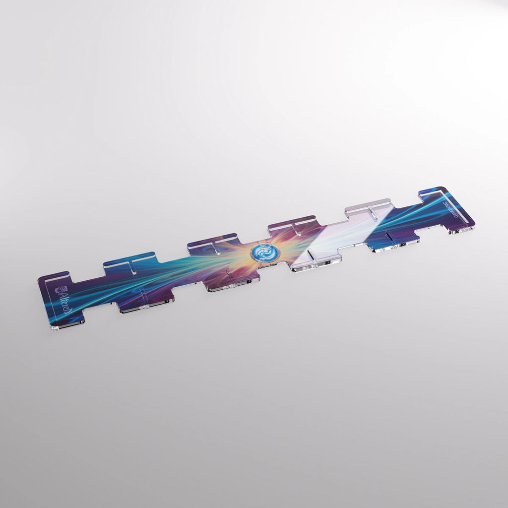 The track is designed to hold the game’s Adventure cards securely in place – even with sleeves. Precise notches grant easy access and make flipping the cards easy. The high-quality acrylic material combined with the beautiful art are ideal for an upgraded gaming experience. The track is delivered in two pieces, ensuring easy assembly and compact storage – for example with the Cards’ Lair PRO 1000+ Altered Edition. The Premium Adventure Track is perfect for all enthusiastic players of Altered.