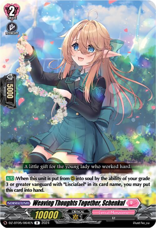 [AUTO]:When this unit is put from (RC) into soul by the ability of your grade 3 or greater vanguard with "Lisciafael" in its card name, you may put this card into hand.