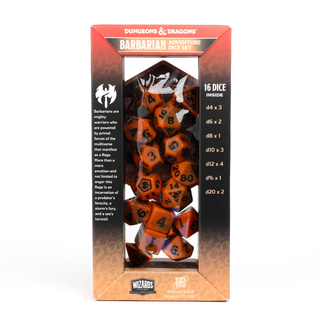 Introducing the officially licensed Dungeons & Dragons Adventure Dice Sets, the ultimate accessory for any RPG fan. Each set is crafted to embody the spirit of your favorite D&D roles, including Fighter, Rogue, Wizard, and more, with a specific number of dice tailored to suit the unique needs of each class. Featuring colors that perfectly complement each class and new class icons, these dice bring your character to life with every roll. Whether you're a seasoned dungeon master or a new player, these dice are a must-have for rolling crit hits and casting epic spells.