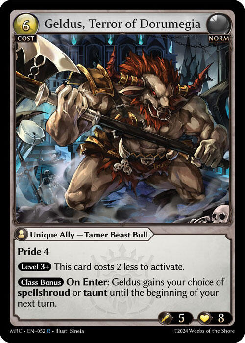 [Class Bonus] On Enter: Geldus gains your choice of spellshroud or taunt until the beginning of your next turn.