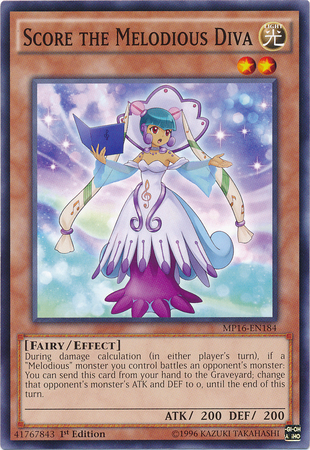 During damage calculation (in either player's turn), if a "Melodious" monster you control battles an opponent's monster: You can send this card from your hand to the Graveyard; change that opponent's monster's ATK and DEF to 0, until the end of this turn.