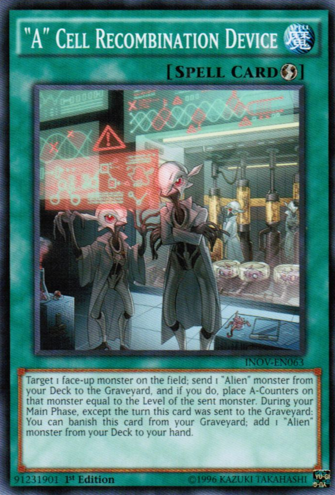 Target 1 face-up monster on the field; send 1 "Alien" monster from your Deck to the Graveyard, and if you do, place A-Counters on that monster equal to the Level of the sent monster. During your Main Phase, except the turn this card was sent to the Graveyard: You can banish this card from your Graveyard; add 1 "Alien" monster from your Deck to your hand.